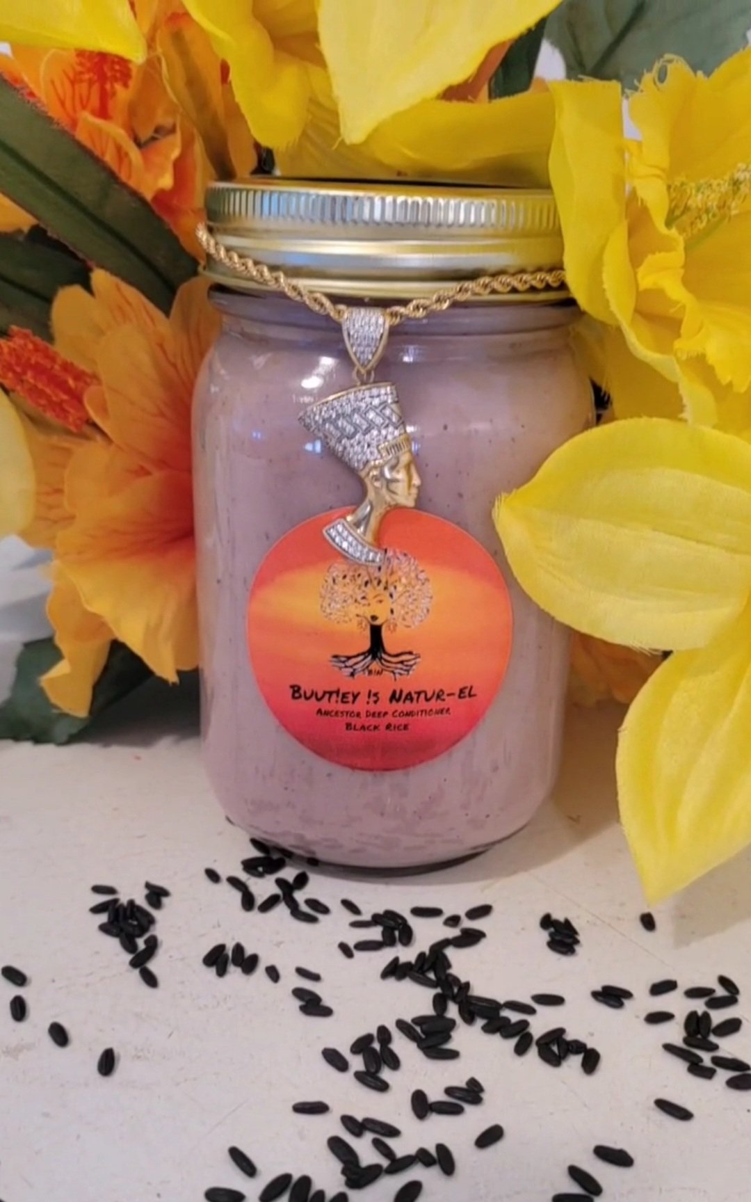 This is Buutiey Is Naturel's New Ancestor Deep Conditioner. Our Conditioner is made with Black Rice! Black rice aids with hair growth and length retention making your hair stronger, fuller, and softer. I made this conditioner in commemoration of Juneteenth and Black History month. The Ancestors Deep Conditioner came from a place of love for our people, culture, and heritage. I made sure that this deep conditioner nourishes and perseveres the stories that are told from the strands of our hair. So this one is for my Ancestors, your Ancestors, Us. So Peace, Love, and Hair Care till next time. Ohh and remember to take care of your hair because it tells a story.
